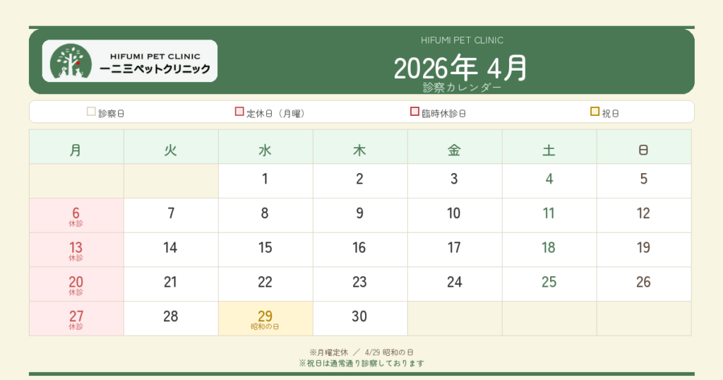 2026年4月 診察カレンダー